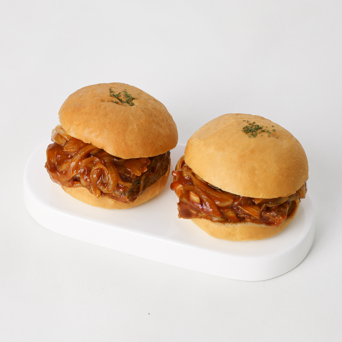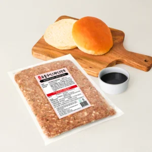 | 조리방법 | 1. 스테이크 1.5kg 팬에 깔고, 오븐 건열 180도 13~15분 굽는다. (햄버거: 20등분) 2. 양파를 갈별 될때까지 볶다가 바베큐소스를 넣고 가열한다. 3. 오븐에 햄버거 빵을 데워준다. (해동하여 바로 사용가능) 4. 2번에 구워진 스테이크를 넣고 살살 버무린다. 5. 소스에 버무린 스테이크를 빵에 넣어주면서 바로 배식한다. ** 훨씬 간편하고 CCP걱정 없습니다.** (유산지에 싸셔도 됩니다.) 1인량- 스테이크반죽80g, 바베큐소스20g, 햄버거빵1개, 양파40g |