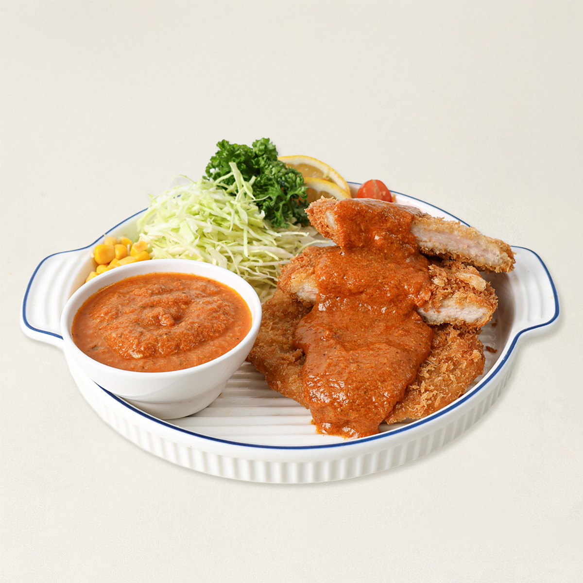 | 주요성분 | 돈까스: 돼지고기(등심:국산) 65%, 쌀(국산) 0.6% 소스: 토마토페이스트, 휘핑크림, 양파(국산), 캐슈견과(베트남산) |