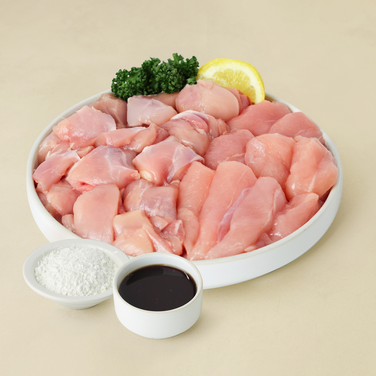 | 주요성분 | 닭 : 친환경(무항생제) 1등급 냉장닭 *염지가공품이므로 등급판정서는 참고용으로 제공됩니다* 닭고기 : 닭고기99.8%(안심,다리살:국산), 정제소금, 정제수 쌀파우더 : 쌀가루, 전분, 밀가루, 흑후추분말 갈릭소이소스 : 물엿, 혼합간장, 양파, 마늘 재료포함, 직접만듦 |