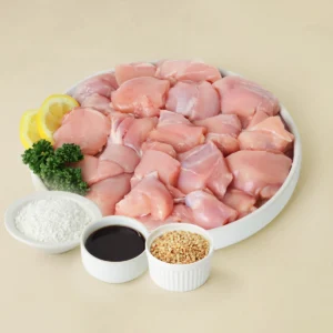 | 조리방법 | 1. 쌀가루를 물 반죽 한다. (마른반죽 가능) 2. 염지된 닭을 1번에 버무린 후 180도 10~12분 튀겨낸다. 3. 가열한 갈릭소이소스에 튀긴 닭을 넣고 빠르게 버무려 둔다. 4. 준비된 닭에 마늘후레이크를 뿌려 배식한다. |